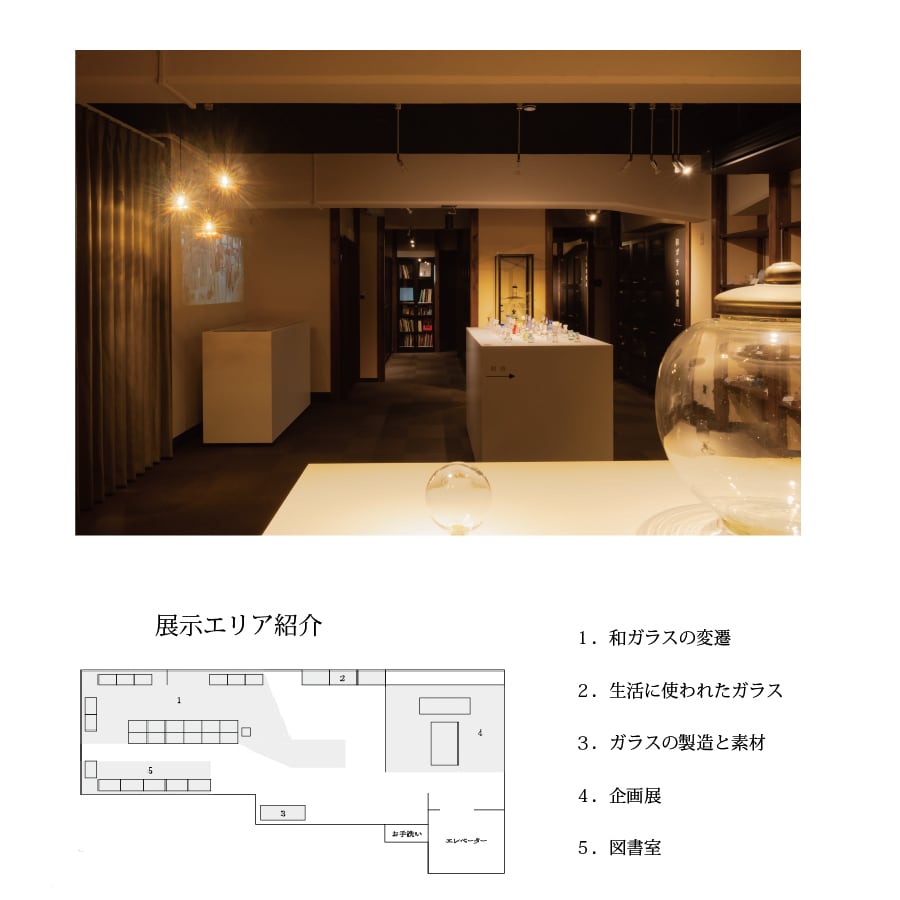廣田硝子の製造品ほか、会長 廣田達夫が蒐集した和ガラスやヴィンテージガラス、金型などの器具、専門書などを展示。人々の感性に訴えるガラスのぬくもりと、脈々と受け継がれてきた職人の技をご覧ください。